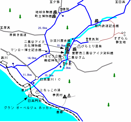 (交通:富川-バス[30分]-資料館-バス[6分]-平取温泉-バス[62分]-日高)