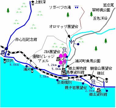 (交通:苫小牧-[JR89分]-新冠-[JR6分]-静内-[JR60分]-浦河)