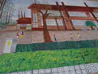 日出小学校は昭和56年3月廃校になりました。現在は木造の体育館が残るだけですがその壁面には児童の作品が凛然と掲げられ訪れる人を圧倒します。