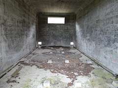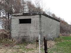 窓が少ないRCの構造物が燃料庫でした。下部に小さな開口があり、中のタンクからの配管が整備されていたと推測できます。