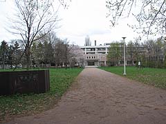 環状通は北大キャンパスで途切れていましたが全長1,070mの環状通エルムトンネルが平成13年に開通することによりキャンパスを横断することになりました。トンネルの地上部はかつては細い車道がカーブをしながら新川通から北18条通へ抜けていましたが今は整備された歩道が獣医学部前を通ります。途中ベンチも整備された散歩には最適な空間となっています。