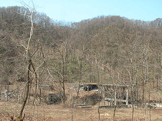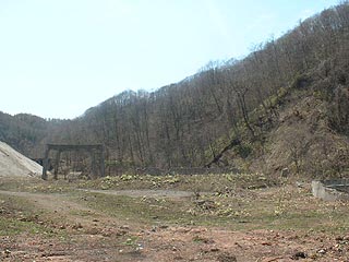 斜坑捲場の脇からズリ運搬用の輸車路の長屋根がありましたが平成17年に解体されています。