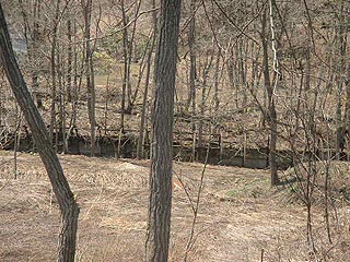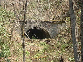 写真左は対岸に残るベルト斜坑捲場のコンクリート土台です。写真右は本沢と奔幌内を結んでいた人車連絡隧道の入口です。
