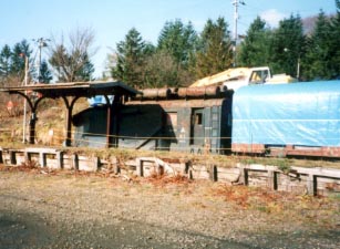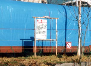 ■保存活動後の様子保存活動でまず最初に行われたのがブルーシートによる車両の防護です。 冬期の状態悪化を防ぐためにとられた措置です。 2両の客車にブルーシートが張られました。最後尾の客車(ナハフ1)はこの時点では台車から崩れ落ちていました。 その後、復旧作業が行われ、元の状態に戻されています。