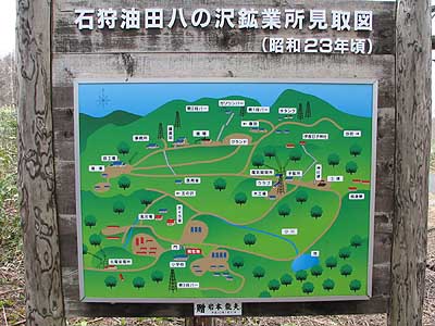 八の沢小学校跡には見取図が掲げられています。現林道の位置は推測が必要です。