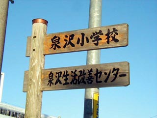泉沢の小学校の入り口には卒業生の訪問を待ちわびるかのように見学者入口の張り紙が貼ってありました。平成13年頃に校舎の外壁は塗りなおされているため外見はとても温かみのある雰囲気で、薄日が校舎の外壁やガラスに反射し、とても美しかったです。