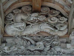 上国寺に隣接してあるのがこの上ノ国八幡宮です。国道から少し奥まったところに本堂があり小さいながらも美しい境内です。この本堂の建造も1770年とほぼ上国寺と時代をほぼ同じとします。本堂正面を見上げたところにある木彫りの龍の見事さには言葉を失いました。私の2003年の初詣神社です。
