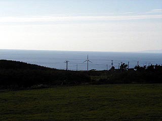 風車の数はたった2基。 夷王山の麓にぽつんとあります。 目立つこともない風車ですが、 なんだかとてもいいかんじ。 風車がまわり、 見上げた上には秋の空。 (地域別情報4-2-2.上ノ国・湯ノ岱温泉に地図と周辺案内があります。)