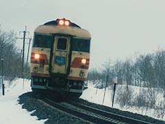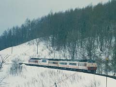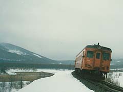 昭和62年3月に士幌線、湧網線を訪問していた合間に狩勝峠を訪れました。札幌から急行まりもに乗車し新得駅に深夜に降り立ちました。狩勝峠はまだまだ冬景色でした。写真左を見て分かる通り塗装が変更の途中で、2種類の塗装が混成状態の列車もありました。写真右は広内信号場。 普通列車。