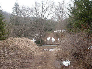さらにメインの道路は西に折れ、南に行く道が分岐しますが沢を渡る悪路で通行は困難です。