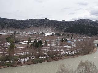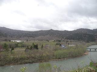 2年半ぶりの定点撮影地点からの風景は写真では大きな変化はないように見えます。しかしながらそのダム側は衝撃的な状況になっていました。付替道道夕張新得線がトンネルから商店街間近まで盛土され整備されてきていたのです。確認したわけではありませんが商店街はどう考えても拡幅された道道の用地補償で取り壊されそうな気配でした。次の訪問時にシューパロ川の畔のこの風景は見ることができないような予感がしました。