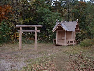写真左は神社。