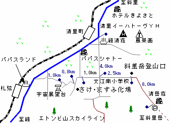 (交通:斜里-バス[26分]-清里-バス[9分]-斜里岳登山口-[8km]-清岳荘)