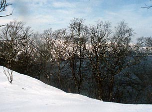 裏摩周分岐から裏摩周展望台までの2.5kmがコースになります。 このコースは夏場は一般の道路として使われているので傾斜自体はゆるく初心者向きです。ただし裏摩周展望台まではそのゆるい上りがずっと続くのがちょっとだけたいへんです。裏摩周の冬の風景はクロカンでなければ見ることができない風景ですので機会に恵まれたら行ってみましょう。摩周湖YH、ひとつぶの麦でツアーを出しています。また清里イーハトーヴYHでは裏摩周分岐-裏摩周展望台-神の子池のルートでツアーを出しています。