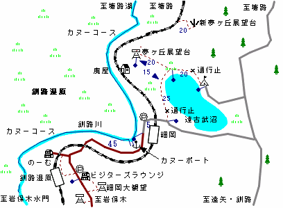 (交通:釧路-[釧網線18分]-釧路湿原-[釧網線4分]-細岡)