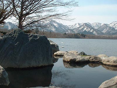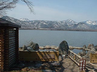 屈斜路湖ではコタン、砂湯、仁伏などでオオハクチョウを観察することができます。砂湯は温泉が湖に湧出する場所で越冬するハクチョウもいる場所です。コタンの露天温泉では温泉に浸かりながらハクチョウを眺めることができるのです。写真はGWのものでほとんどのハクチョウはシベリアに帰り、残っていたハクチョウはわずかでした。 コタンの露天風呂は中央に石の仕切りがあるものの混浴同然です。脱衣小屋も写真のように若干離れています。 屈斜路湖に残るオオハクチョウ。