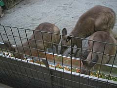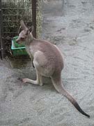 カンガルー館は昭和63年にタスマニア館としてオープンしました。当初はオーストラリア・タスマニア州観光協会と北海道観光連盟の姉妹提携を記念して寄贈されたタスマニア由来の動物を展示していましたが、タスマニア由来の動物の種類が減り、カンガルーがメインとなったことから現在の名前に平成19年に変更されました。今はハイイロカンガルー、スローロリス、モモイロインコがいます。 ハイイロカンガルーの子供。餌を食べている姿がかわいらしい。 カンガルーになれます。