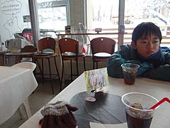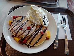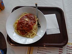 写真左はピリカパンケーキ。内容を考えると800円はちょっと高めですがシロクマの顔を付けたクッキーがかわいらしい。パンケーキにシロクマの顔が描かれたZOOパンケーキもあります。写真右はミートスパゲティ500円、他にカレー、焼きそば、オムライス等もあります。