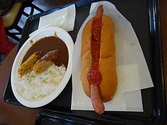 写真左はウーロン茶と道産皮付きポテト。写真右は北海道コロッケカレーとホットドック。ホットドックのソーセージは道産豚肉を使用したもの。北海道コロッケカレーのコロッケはじゃがいもとかぼちゃのコロッケが半切れづつ入っていました。