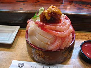 増毛町市街にある「寿司のまつくら」は昼間は観光客で、夜は地元の人で賑わう寿司店です。普通のメニューでは特上生ちらし、甘えび丼などの丼ものや各種定食があります。駐車場は店の前にありますが、満車の場合は増毛駅横に停めればいいのではないかと思います。