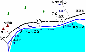 (交通:函館-[JR普通60分]-木古内)