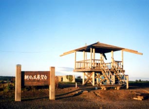 ■朝日ヶ丘展望台 もしかするとこの素朴な展望台も今年で取り壊され新しい立派な展望台が立つという話も。 すでにその準備としてトイレは移動式のものとなっていました。 鐘が展望台の脇にあり鳴らすと丘の台地に響き渡ります。 夕方には訪れると日没がとてもいい。 ただ実際のところこの女満別の丘風景は展望台からが一番ではなく、 探すともっと美しい場所が幾つも見つかります。