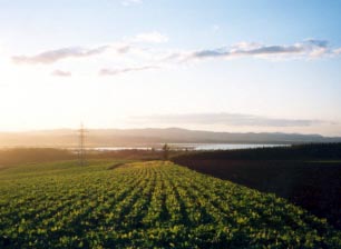 ■送電線と畑 展望台から北を望んだ時の風景。 展望台から写真を撮ろうとすると電線がどうしても邪魔になってしまうのが残念ですね。