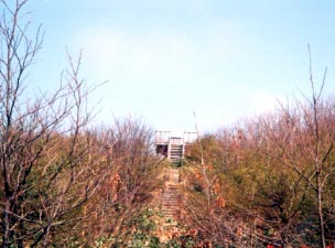 ■島の植林地帯島の北部、西浦地区にはわずかな範囲ですが植林が行われています。 植林された森林と草原が入り組み広がっています。島の背を抜ける道路から 木でできた展望台が垣間見え思わず登りたくなってしまい行ってきました。定点観測台という名前が付いている施設で森林の状況を観測するものらしいのですが展望自体はよくなく行くほどの場所ではありませんでした。