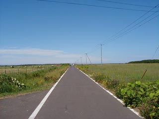 ■オンコ林を抜けるとオンコ林を抜けると突然、そこは一面の草原になります。 この草原がめん羊牧場で島の台地の大部分を占めています。 オンコ林出口に小さな休憩所があります。
