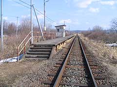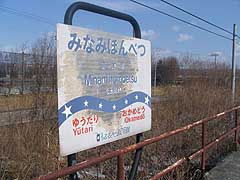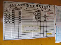 平成18年3月のふるさと銀河線。十勝界隈をあっちにいったりこっちにいったり。その中で南本別駅に僅かな時間ですが立ち寄ることになりました。ふるさと銀河線の駅の中で最も地味な部類に属する駅で製糖工場の裏にぽつんと駅があります。 池田行きの列車から降り立ちました。 駅はコンクリート製のホームがのっぺりあるだけ。 待合室内は時刻表と思い出列車運行の案内がありました。