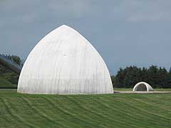 モエレ沼公園の中でも西側に位置するテトラマウンドは東口周辺の賑わいからは離れ落ち着いてのんびりすることができる場所かもしれません。私もプレイマウンテンやモエレ山からは眺めてみたものの時間的制約もあり行くことはしませんでした。テトラマウンドの円形の丘には時々人があがっていました。写真はプレイマウンテンからのもの。三角錐は直径2mのステンレスでできていて高さは13m。