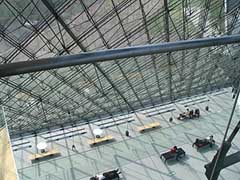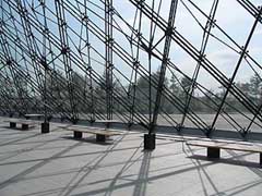 ガラスのピラミッドの中は冬も晴れていれば日が射し、暖かさを感じる空間です。モエレ沼公園を歩いて疲れたらここで休憩するのもいいのではないでしょうか。2階部分は階段にも工夫が凝らされていて施設全体に芸術品としての価値を感じます。