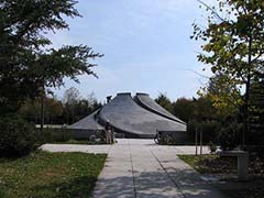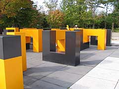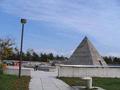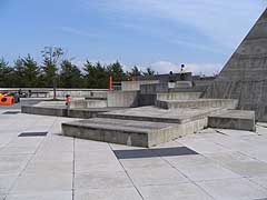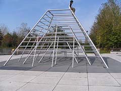 ピラミッドは何かおもしろいものかと近づいてみるとトイレでした。周りは階段状になっていて遊ぶこともできます。
