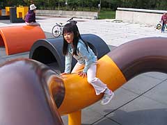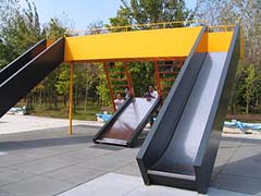 すべり台は幾つかの広場にありましたが子供が存分に楽しむような長いものはありませんでした。写真は最もオーソドックスなすべり台。