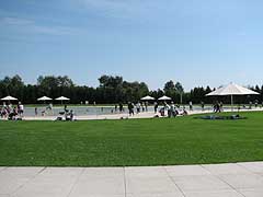 モエレビーチは公園の中に現れた水辺。浅い池になっていて水遊びに最適です。営業期間は6月1日-9月23日の10:00-16:00(木休)。札幌の屋外の水遊びの施設としては最も遅くまで営業していることになりますが、泳げるほどではありません。また着替える場所もないので大人は水辺に佇み、子供は水遊びをしている構図が一般的。