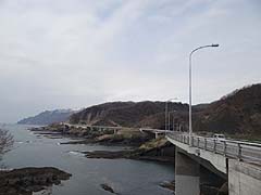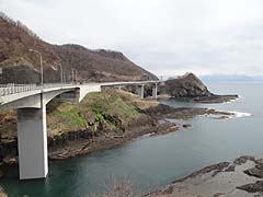 写真左は南を望む。現道は茂岩トンネルに突入しますが海岸線に旧道の痕跡が認められました。写真右は北を望む。道路は改良が加えられ橋梁がひたすらに続きます。