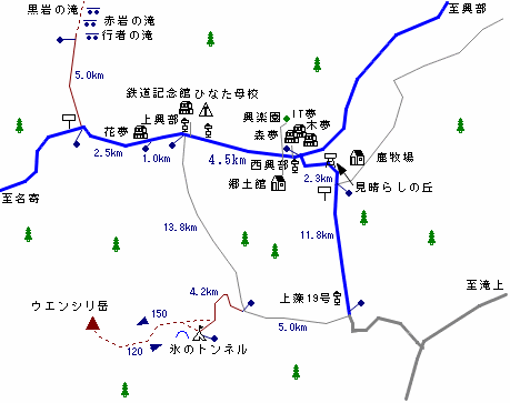 (交通:交通:名寄-[バス55分]-上興部-[バス8分]-西興部-[バス30分]-興部、西興部-[バス25分]-上藻19号)
