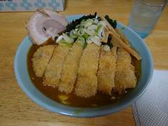 とろっとした濃厚な独特なカレーラーメンは太麺に絡まり、冷えた体にとっては最高でした。カツとカレーはとても合っていて、普通のカレーラーメンよりもお薦めです。ねぎ、わかめ、シナチクものっていますが濃厚なカレーに少々負け気味でした。量も多く、食べるのに難渋する程でした。