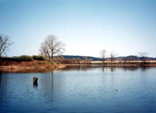 ■旧佐藤の沼その2 その橋から逆に東に向かって撮った風景です。 東側の佐藤の沼にはまだかなりの水が溜まっていました。 水は残念ながら浅いためか濁っていましたがそれでも晴れた日には楽しくなりそうな場所です。