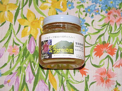 中頓別の道の駅にて購入。アザミの花、シナの花の蜜を原料としいて商品名は花とみつばちの恋と名付けられています。味ははちみつ同士を比較したことがないので詳しいことはいえませんが濃厚な味わいでした。写真は小でさらに中と大があります。発売元の笹尾養蜂園は中頓別町上頓別にあります。