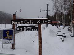 南富良野の落合の山奥にFarm&Cafeベリーズはあります。国道から折れて開けた川沿いの道を入っていくとお店はあるのですが少々分かりにくいので注意しましょう。私は北落合へ向かい、落合へ下ってくる途中で店に立ち寄りました。GWの雪景色の中で新雪の駐車場に足を踏み入れることになりました。