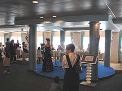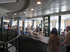 ラウンジ「ミコノス」ではストリートパフォーマンスが2回とビンゴゲームが1回開催されました。ビンゴゲームは14時からということでクルーズの最後のイベントとなります。1枚100円でビンゴカードを販売。ビンゴがなくても絵葉書が必ずもらえます。