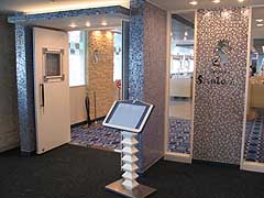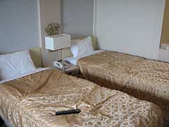 インフォメーションではクルーズ中の客室利用の販売が行われます。料金はセミスイートルーム10000円、特等室5000円、1等室4000円となっています。これらの船室を借りずにプロムナードのソファーや一部開放される2等室を利用する方法もありますが、ゆったりするにはやはり客室利用をお薦めします。先着順でセミスイートは2室しかないため競争率が非常に高く、ここを借りたい場合には乗船する列の先頭近くにいないと正直辛いでしょう。写真は特等室。