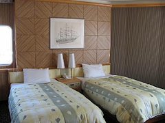 船内の一部客室はモデルルームとして開放されています。ロイヤルスイート601号室、スイート604号室、特等室611号室、1等室511号室の4ヶ所でロイヤルスイート、スイートは必見です。このモデルルーム見学は最初に周る人が多くたいへんな人気です。また利用ができるセミスイートは602号室、603号室でモデルルームに挟まれていて間違って多くの人が入ろうとしたりドアをたたいたりして実は結構たいへんだったりします。写真は特等室のモデルルーム。