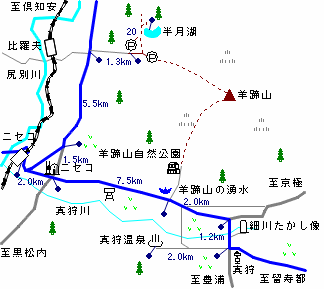 (交通:倶知安-[バス12分]-羊蹄山登山口-[バス9分]-ニセコ本通-[バス19分]-真狩-[バス23分]-留寿都)