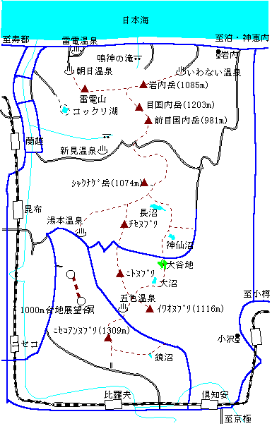 逆に時間に余裕があり、また登山技術もちょっと上の人は目国内岳周辺にも行ってみましょう。 ニセコ周辺よりもずっと静かな山行が楽しめます。 またちょっとひなびた温泉も幾つかあります。