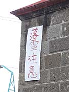 建物は手前から2号倉庫(昭和6年築、木骨石造)、1号倉庫(昭和6年築、木骨石造)、肥料新倉庫(昭和57年築、木造)。落雪注意の看板が愛らしい。