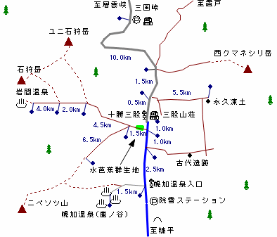 (交通:帯広-[バス97分・4往復]-糠平-[バス20分・ノースライナーみくに2往復]-十勝三股)