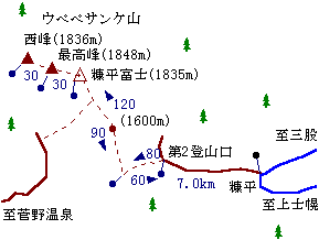 登山口は小学校近くからダートの道に入って、車で20分の第2登山口というところから。 1600mのピークまでは、かなりきつい登りが続きますが、 そこからはかなり展望もよく目的地が見える尾根道になるので、気持ちよく歩けます。 糠平とも呼ばれるウペペサンケ山東端の頂上(三角点)にはリスがいました。