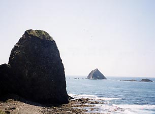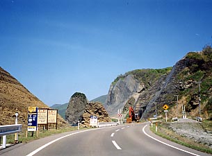 ■ホヤ石と無縁島 こんな風景が西海岸の典型的なものでしょう。看板があるところが幾つかありそこに車を停めながら行くのがいいかもしれません。ホヤ石の滝は道路改良工事の関係からか案内がなくそのまま通り過ぎてしまいました。